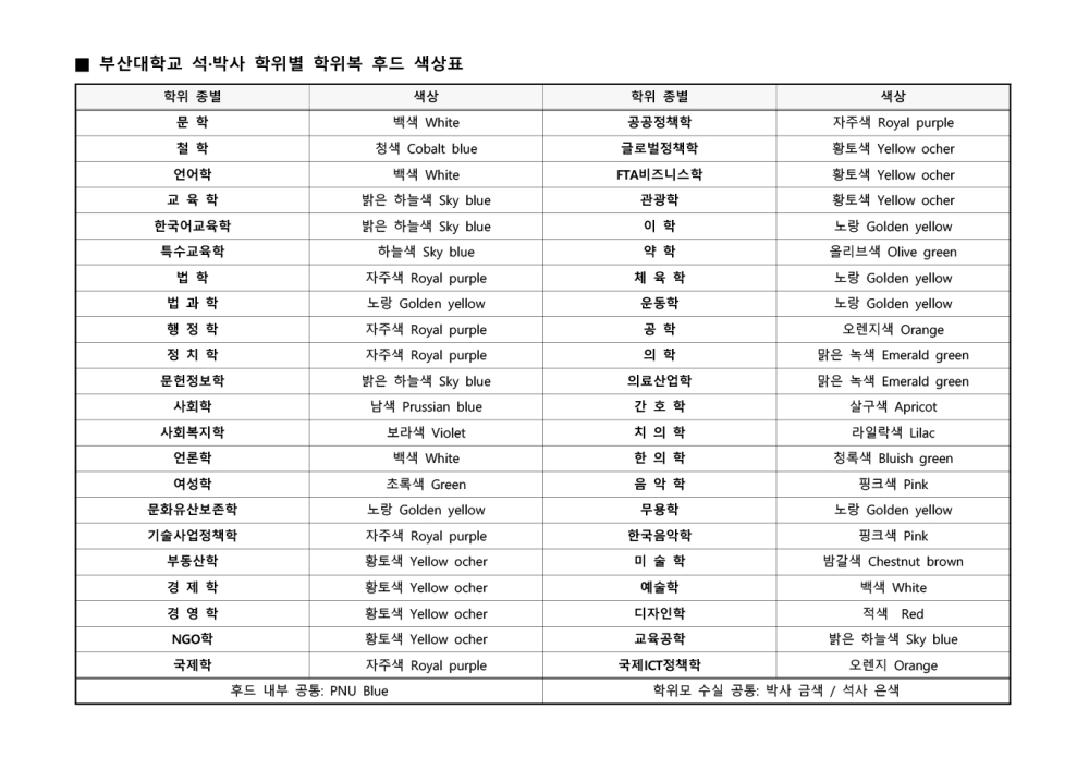 이학석사/박사의 후드 색상은 노랑(Yellow)입니다.